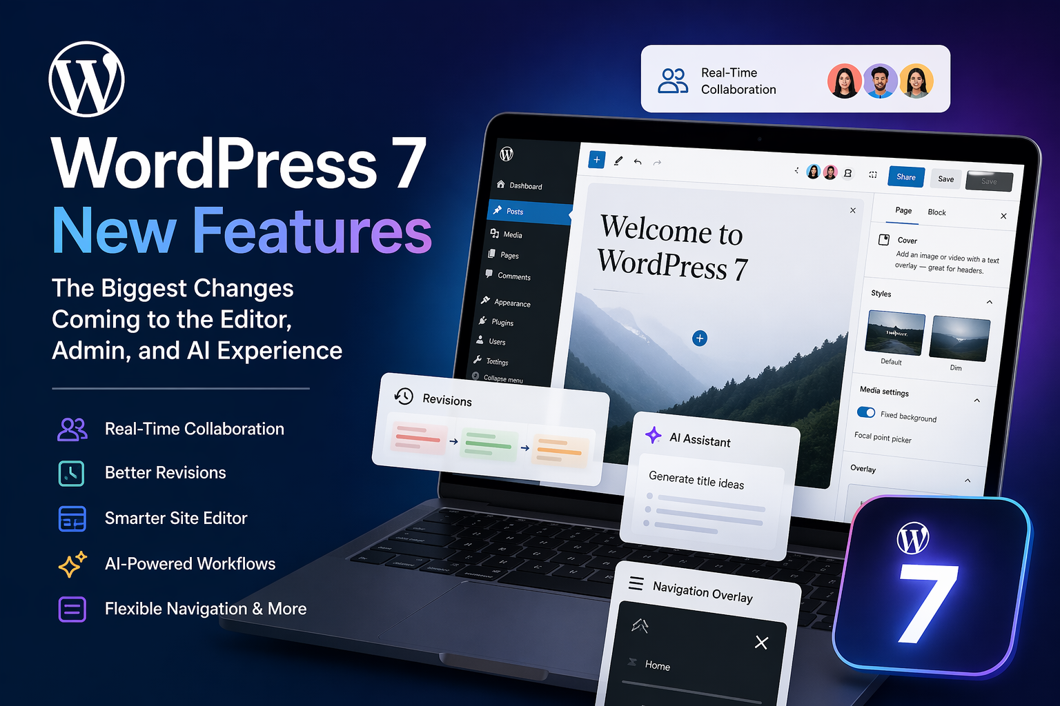 WordPress 7 ნერგავს მნიშვნელოვანი განახლებებს ადმინისტრაციულ პანელში, Site Editor-ში და AI გამოცდილებაში. ამ სტატიაში განვიხილავთ მთავარ ახალ ფუნქციებს, მათ შორის რეალურ დროში თანამშრომლობას(Real Time Collaboration), გაუმჯობესებულ რევიზიებს, ახალ ბლოკებს, რედაქტორის გაუმჯობესებებს და AI-სთვის შექმნილ პირველ